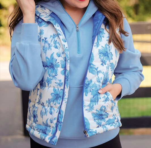 Blue Floral Puffer Vest