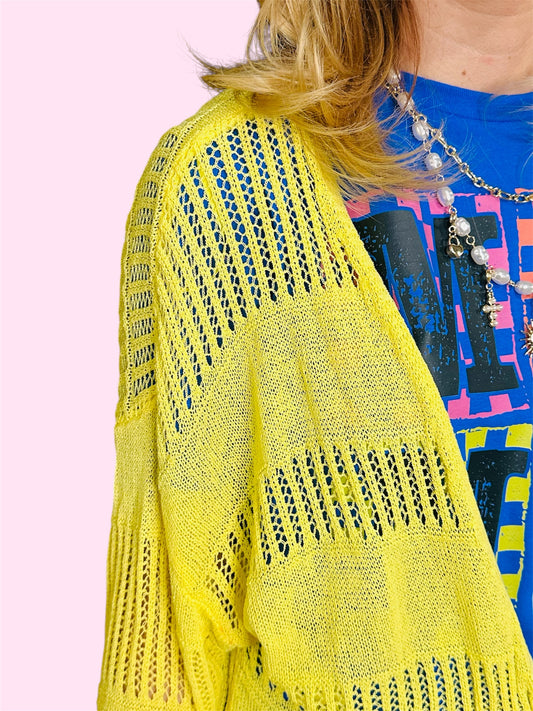 Lightweight Open Weave Sweater Cardigan-Yellow