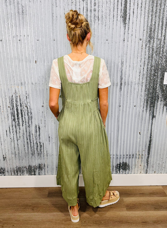 Easy Does It Smocked Jumpsuit- Sage