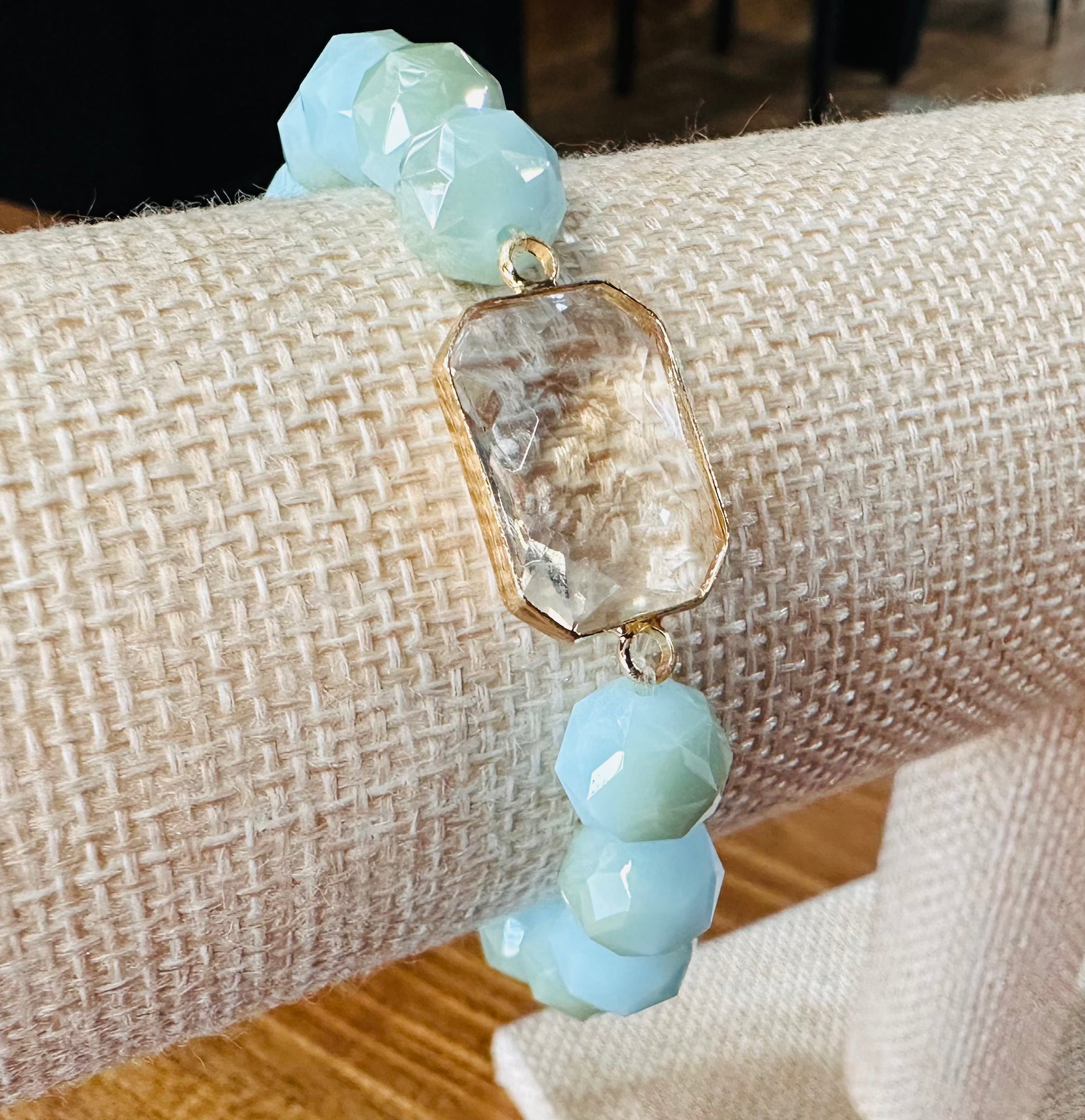Aqua Faceted Bead Bracelet with Clear Crystal Accent