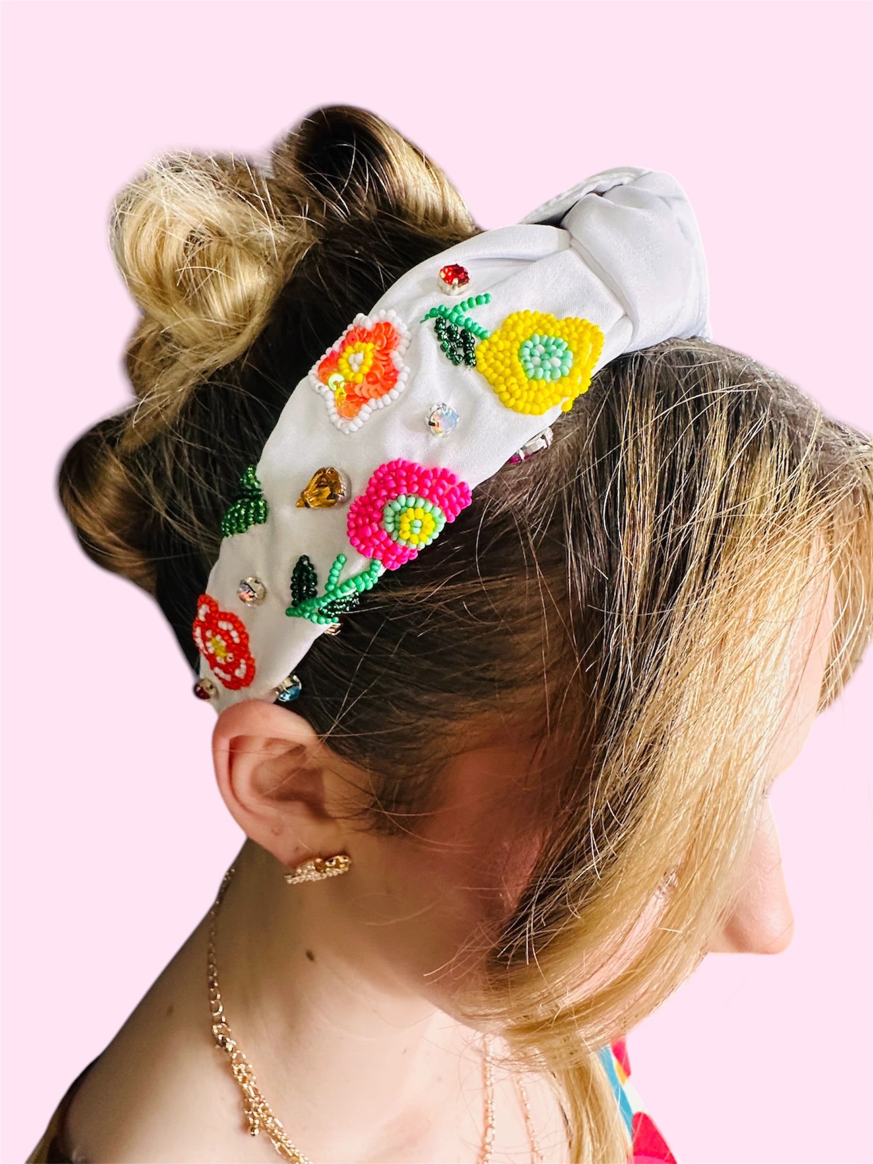 Flower Seed Bead Headband-White