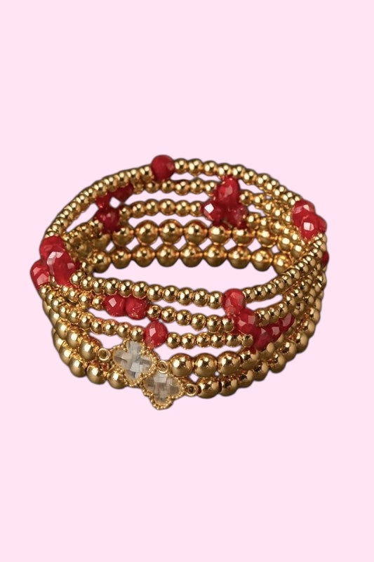 This set blends timeless gold tones with crisp red details for a classy, versatile look. Wear it alone for subtle elegance or stack it high for a bold statement.