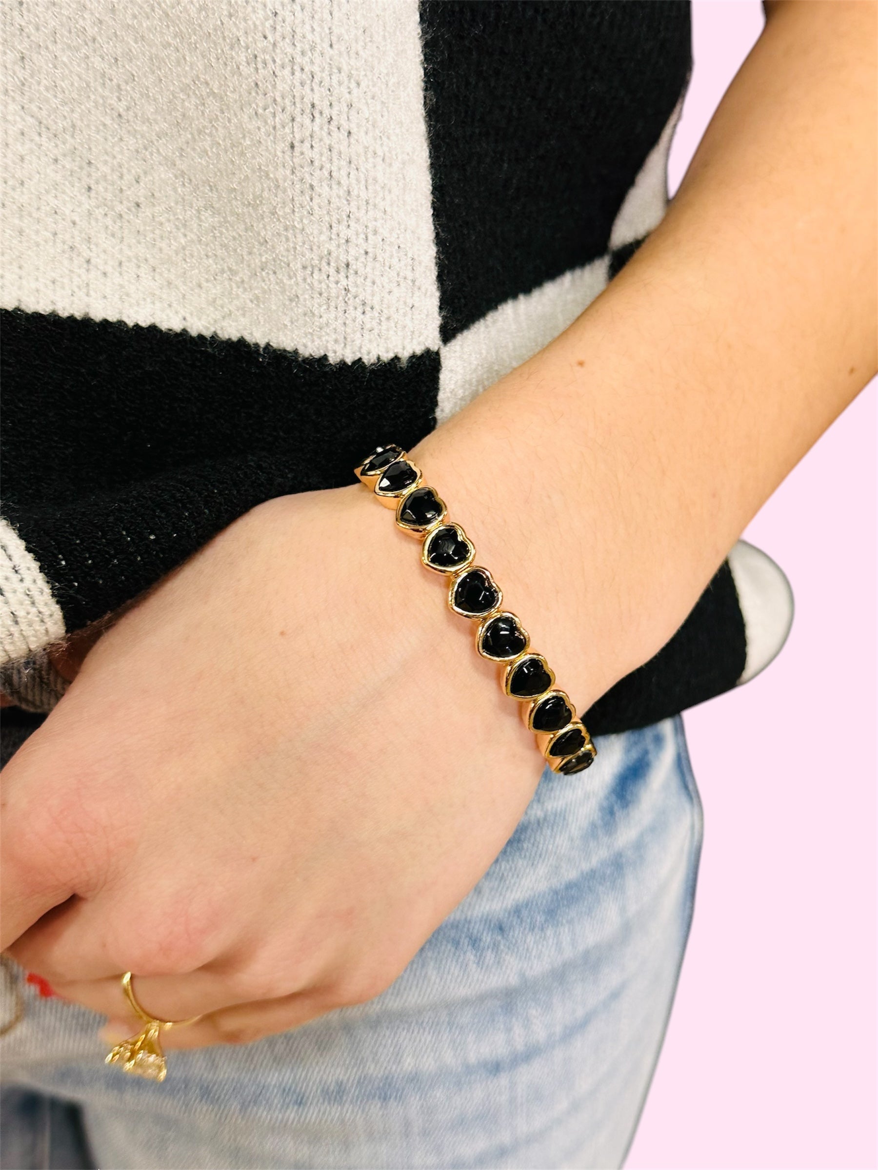 Heart Shaped Rhinestone Stretchy Bracelet-Black