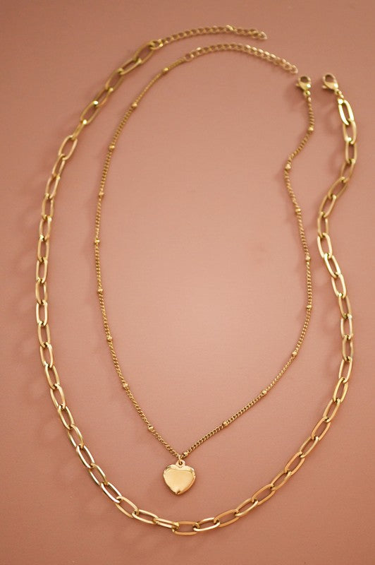 Layered Heart & Chain Necklace