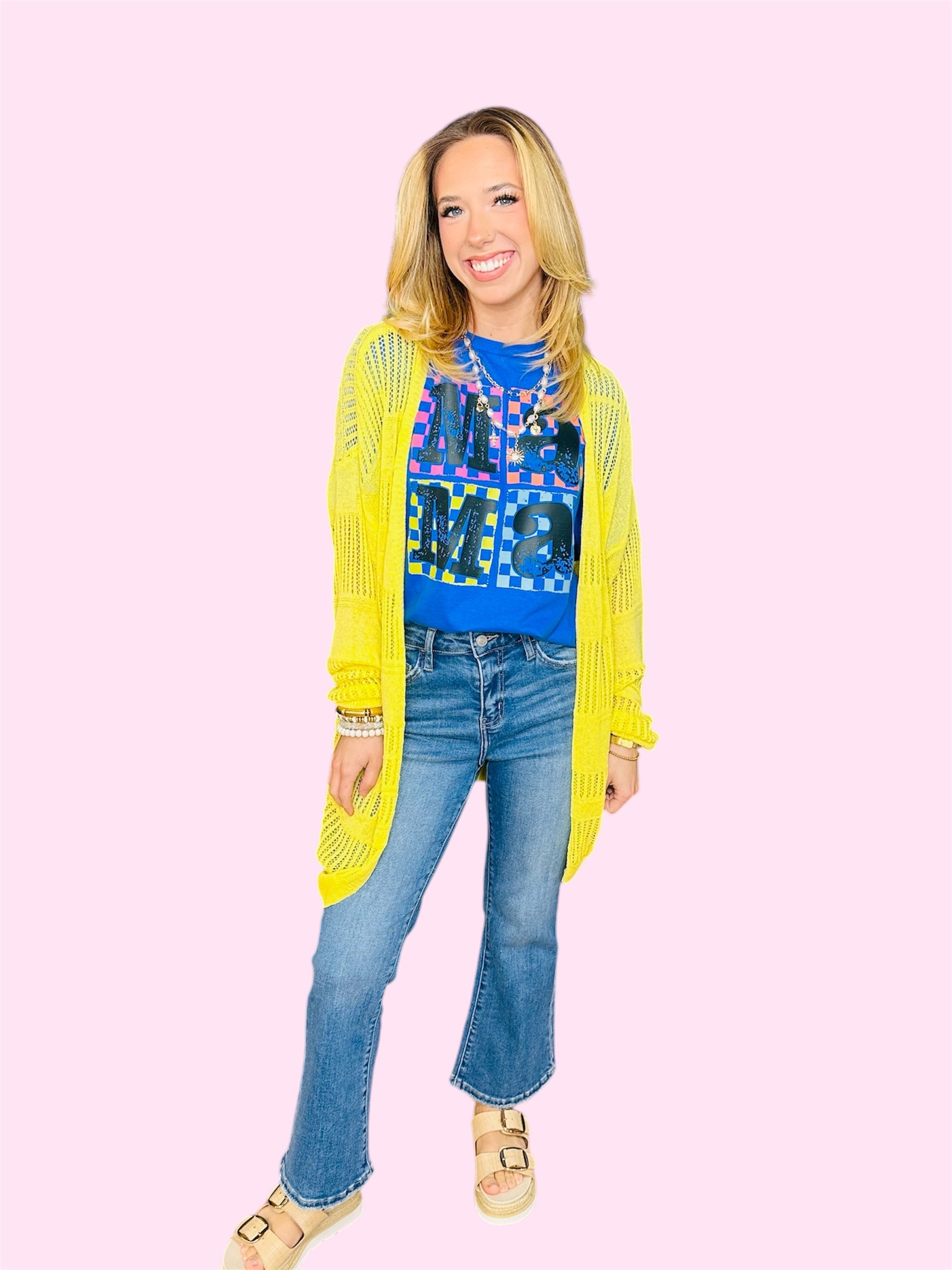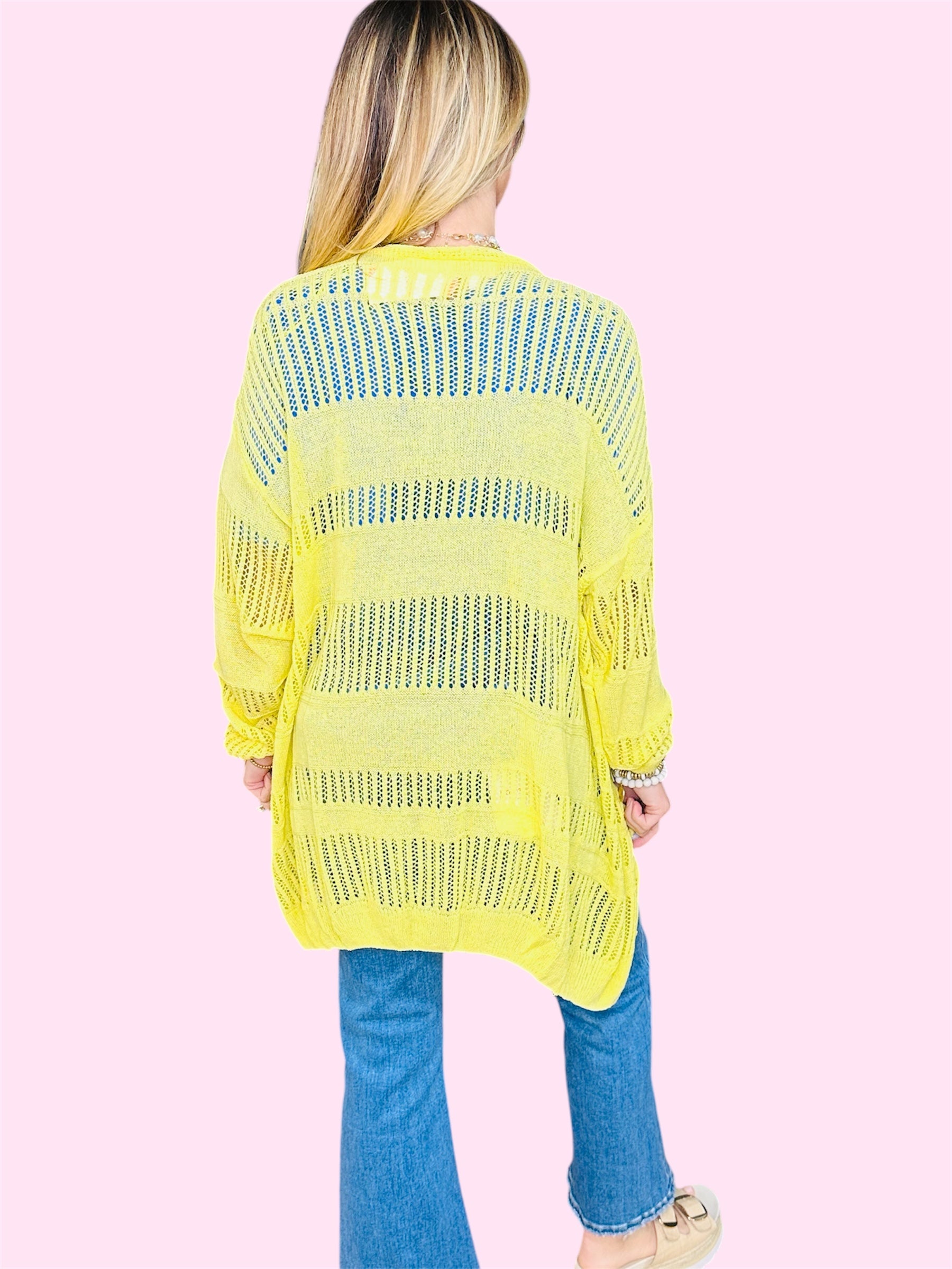 Lightweight Open Weave Sweater Cardigan-Yellow