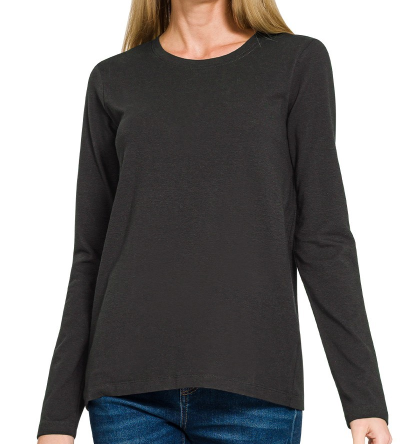Long Sleeve Cotton Crew Neck Tee-Black