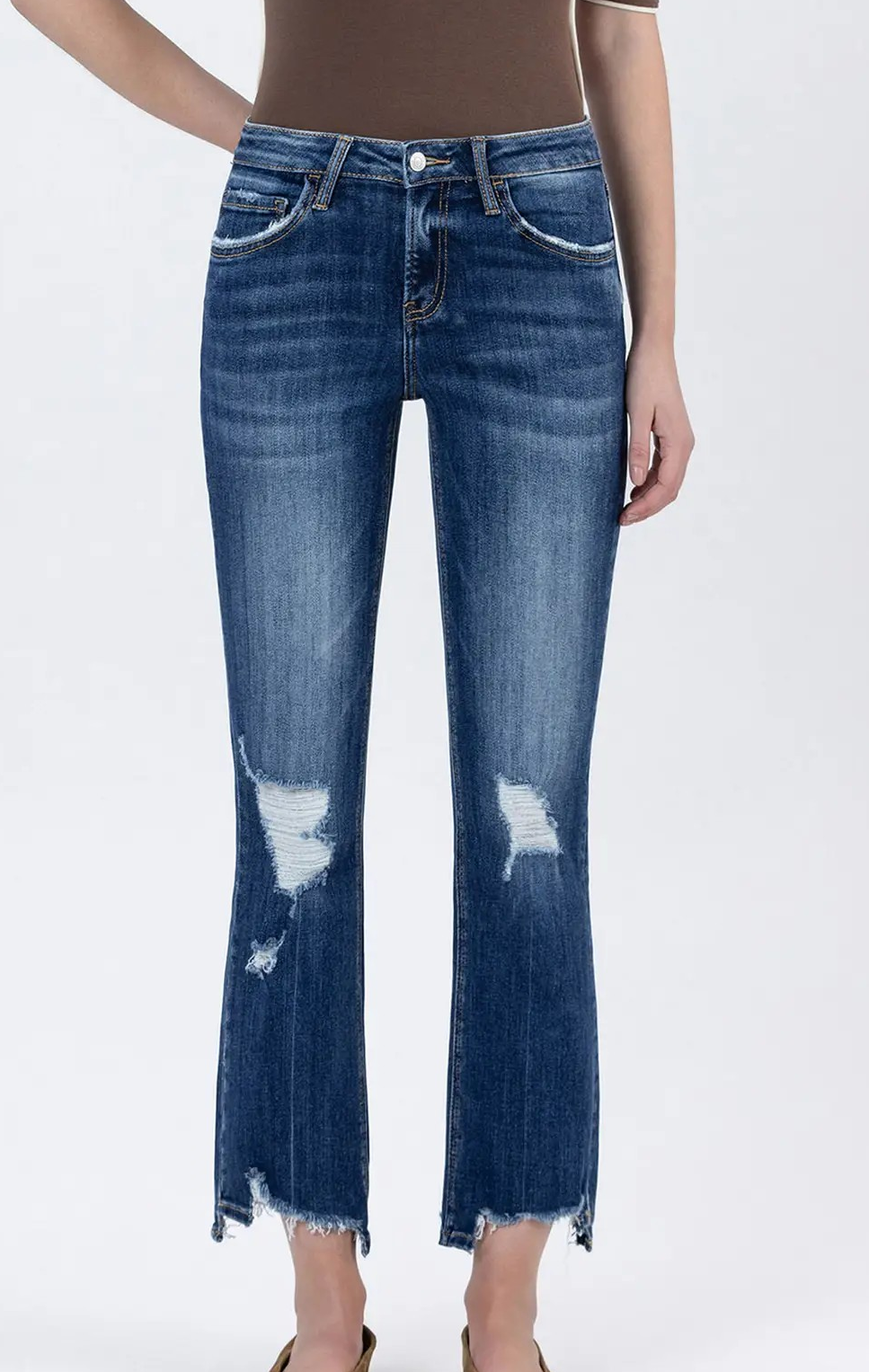 Meet your new go-to jeans for effortless style and comfort! These Lovervet Mid-Rise Kick Flare Jeans are made with a soft, stretchy blend that hugs in all the right places and gives you just the right amount of distressed edge. Featuring a 9" rise and a 27" inseam, they hit right at the ankle for a flattering fit that works with sneakers, heels, or booties. The frayed hem and knee distressing give them a trendy lived-in vibe without being over the top.