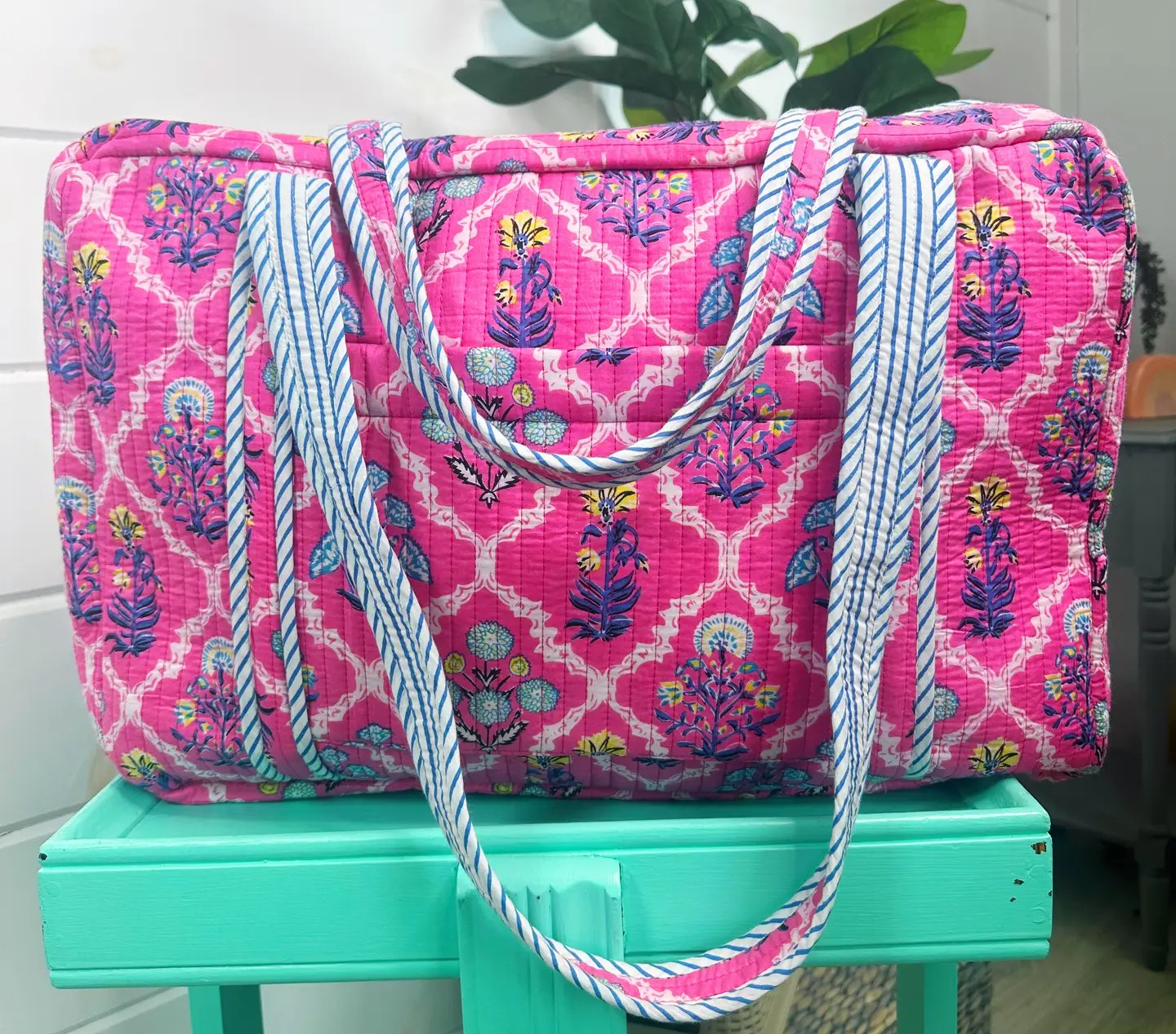 Pink Wildflower Quilted Duffle/Weekender Bag