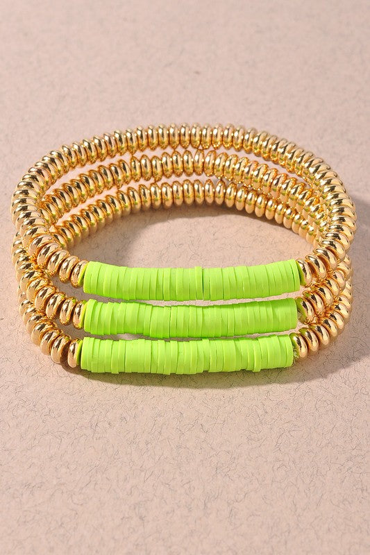 Rubber/ Metal Disc Bracelet Set- Green