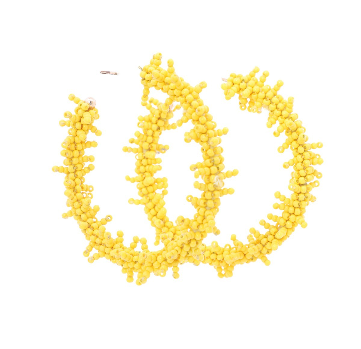 Add a vibrant pop of color to your look with these eye-catching yellow seed bead hoop earrings. Meticulously crafted with tiny beads for a lightweight feel, these statement pieces elevate any outfit from casual to glamorous. The bright yellow hue demands attention while the classic hoop design ensures timeless appeal. Perfect for those who aren't afraid to stand out!
