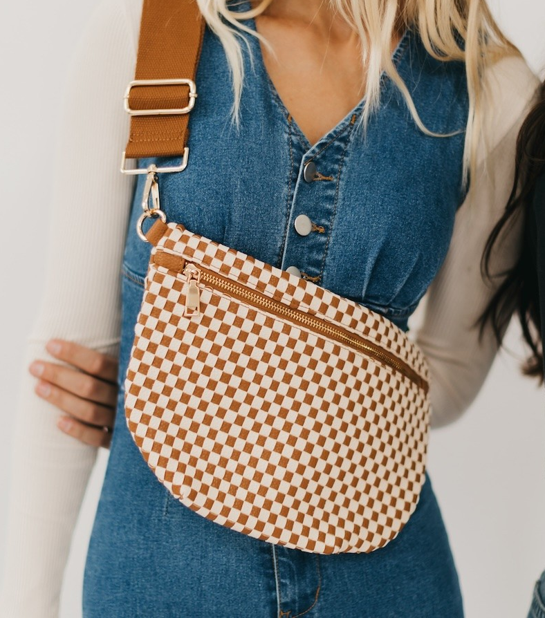 Your new everyday essential is here! The Checkered Chic Bum Bag adds a fun retro twist to any outfit with its caramel and cream checkerboard print. Whether you wear it across your chest or around your waist, this versatile sling bag is the perfect blend of style and function.