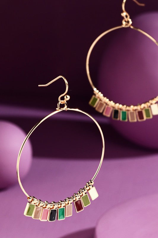 Dainty wire hoop earrings with colorful charms *Metal/Epoxy *Nickel/Lead Compliant *APPROX. D 1.5"