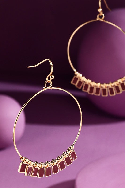 Wire Hoop Earrings w/Charms-Wine